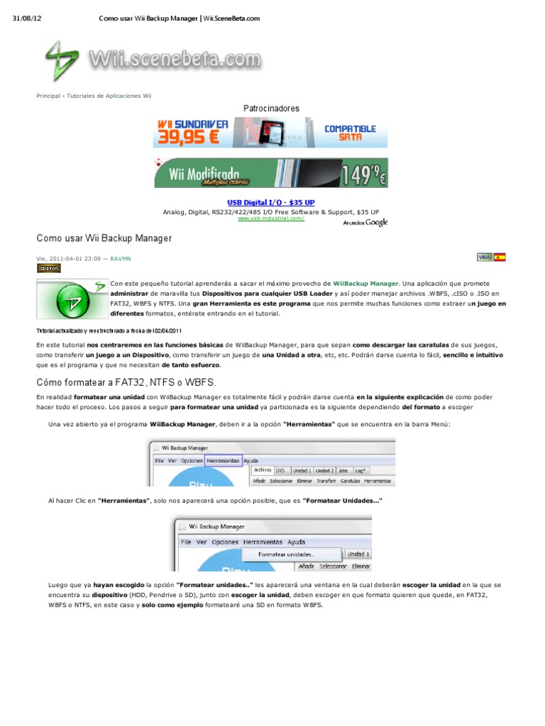 Evita las consecuencias de las pérdidas accidentales de datos con este gestor de sistemas de archivo wbfs para windows. Wii backup manager es un programa para trabajar con copias de seguridad de dvd, fat32, ntfs y wbfs para convertir entre dvd, iso. A partial list of features is below. El sistema wbfs es el utilizado por los cargadores de isos de wii. The wbfs file is the most popular wii game format, a file contains a separate wii partition, it is directly dumped from the partition.